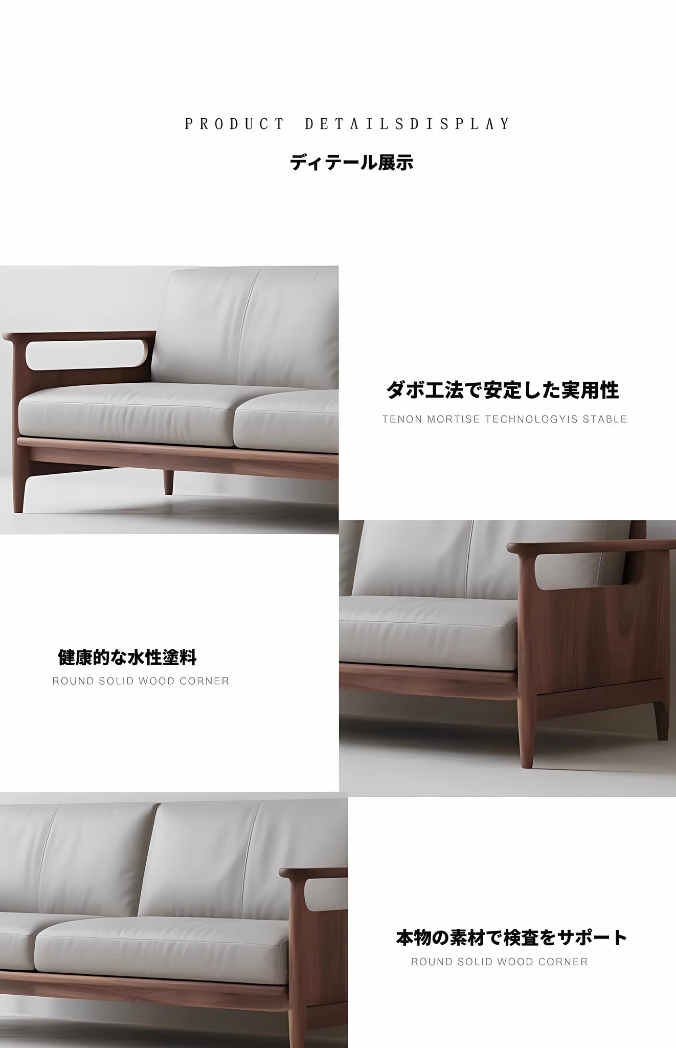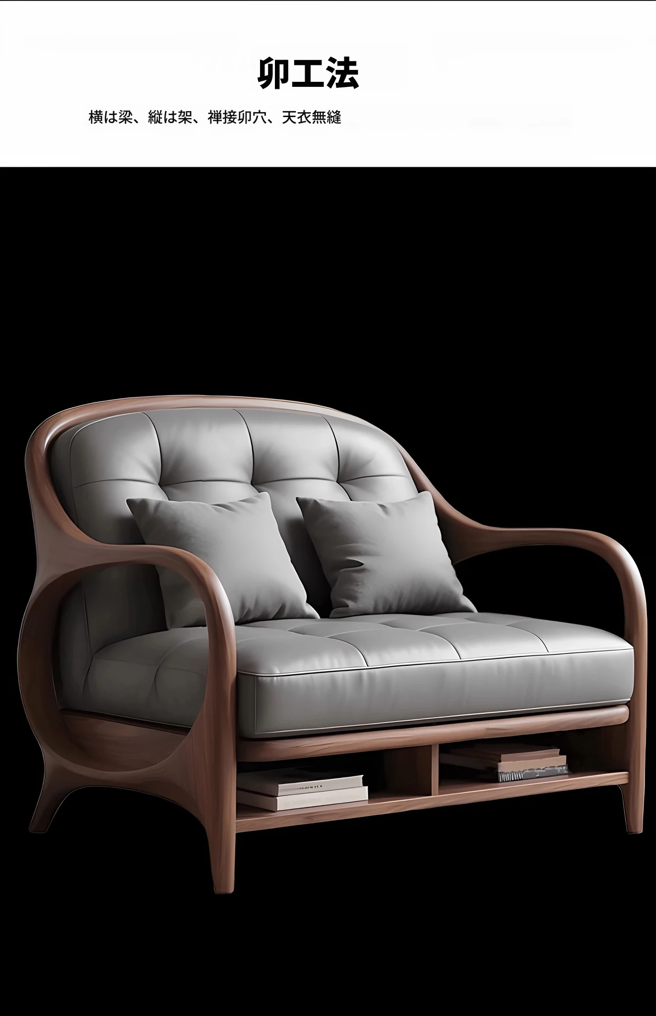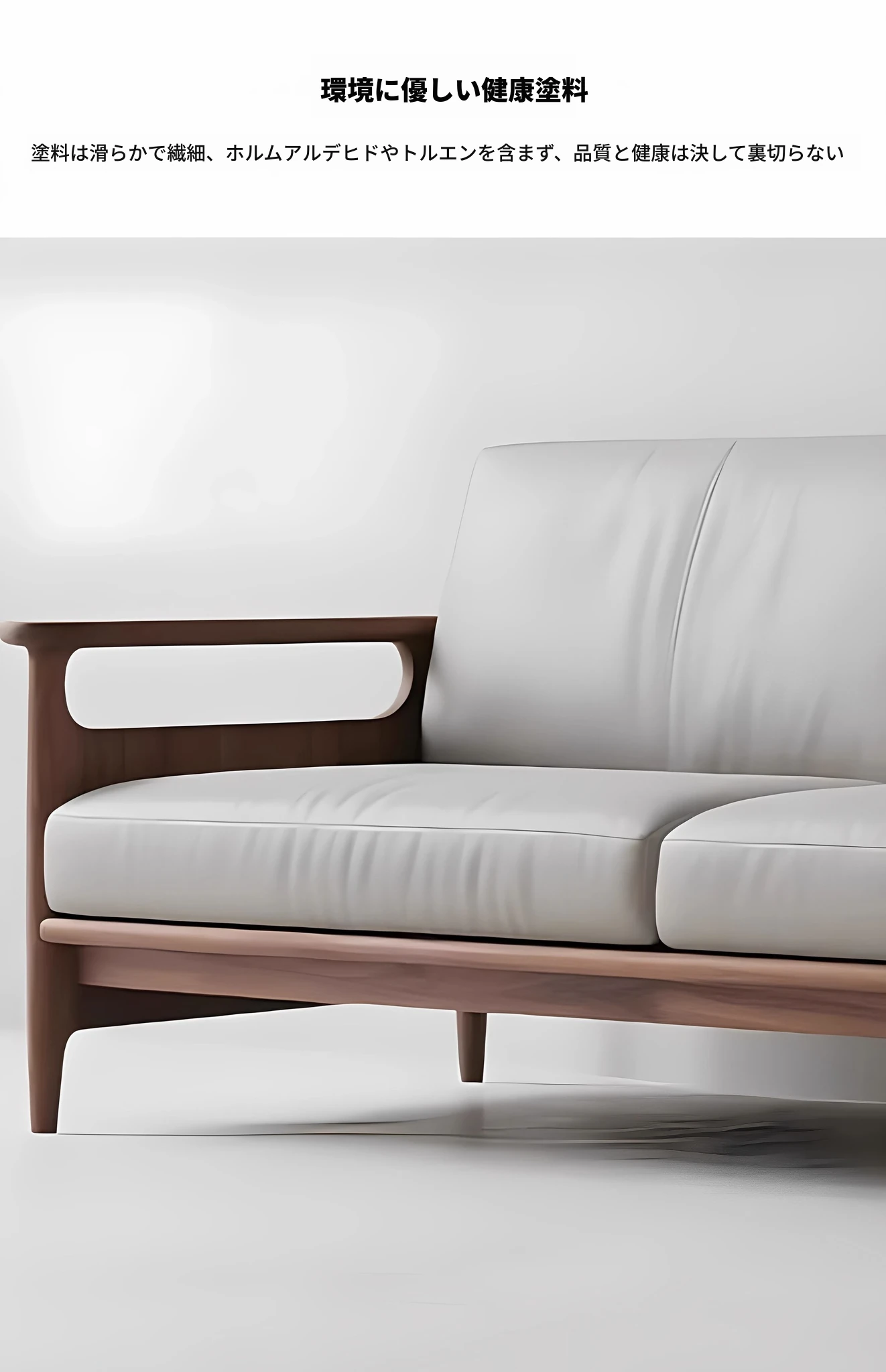 新中式デザインの北米産ブラックウォールナット製、モダンでシンプルな軽奢ソファ。ホワイトアッシュ材を使用した高級リビング家具で、洗練された空間を演出します。