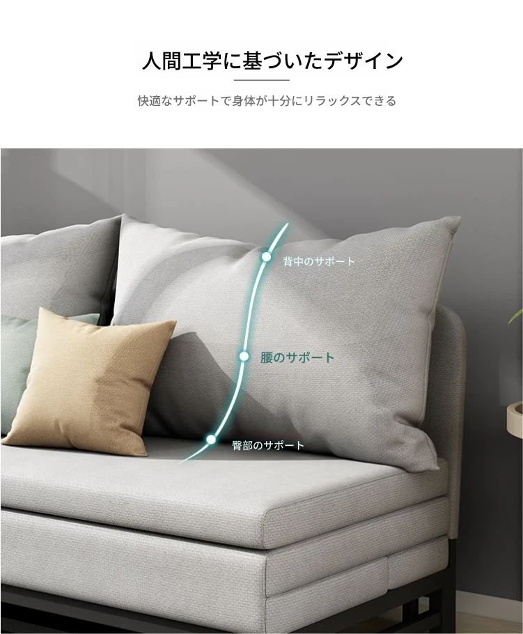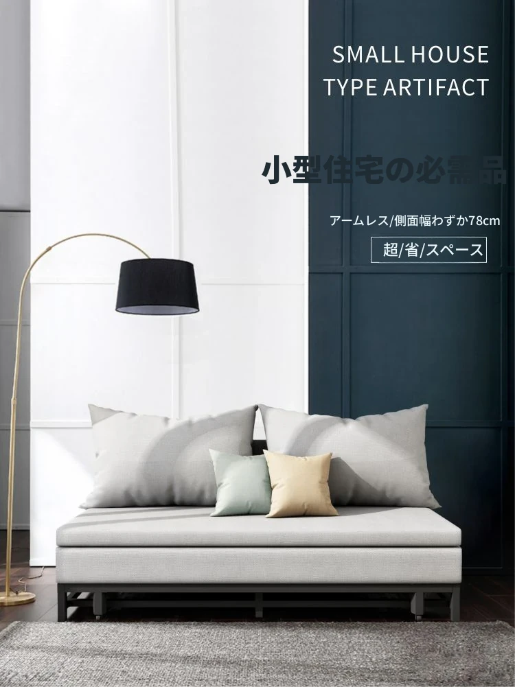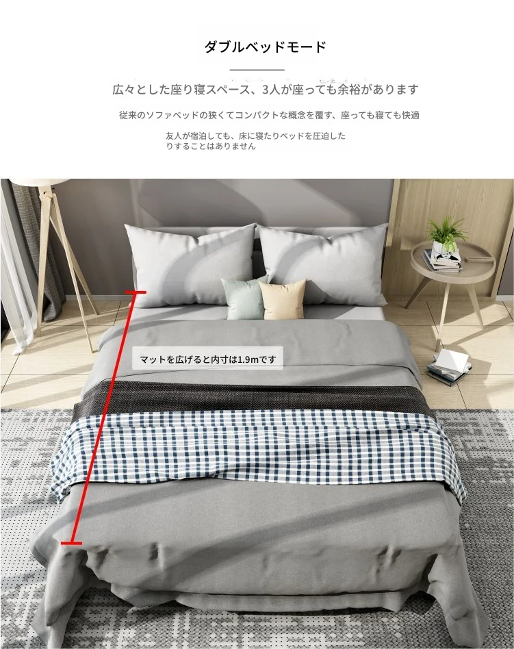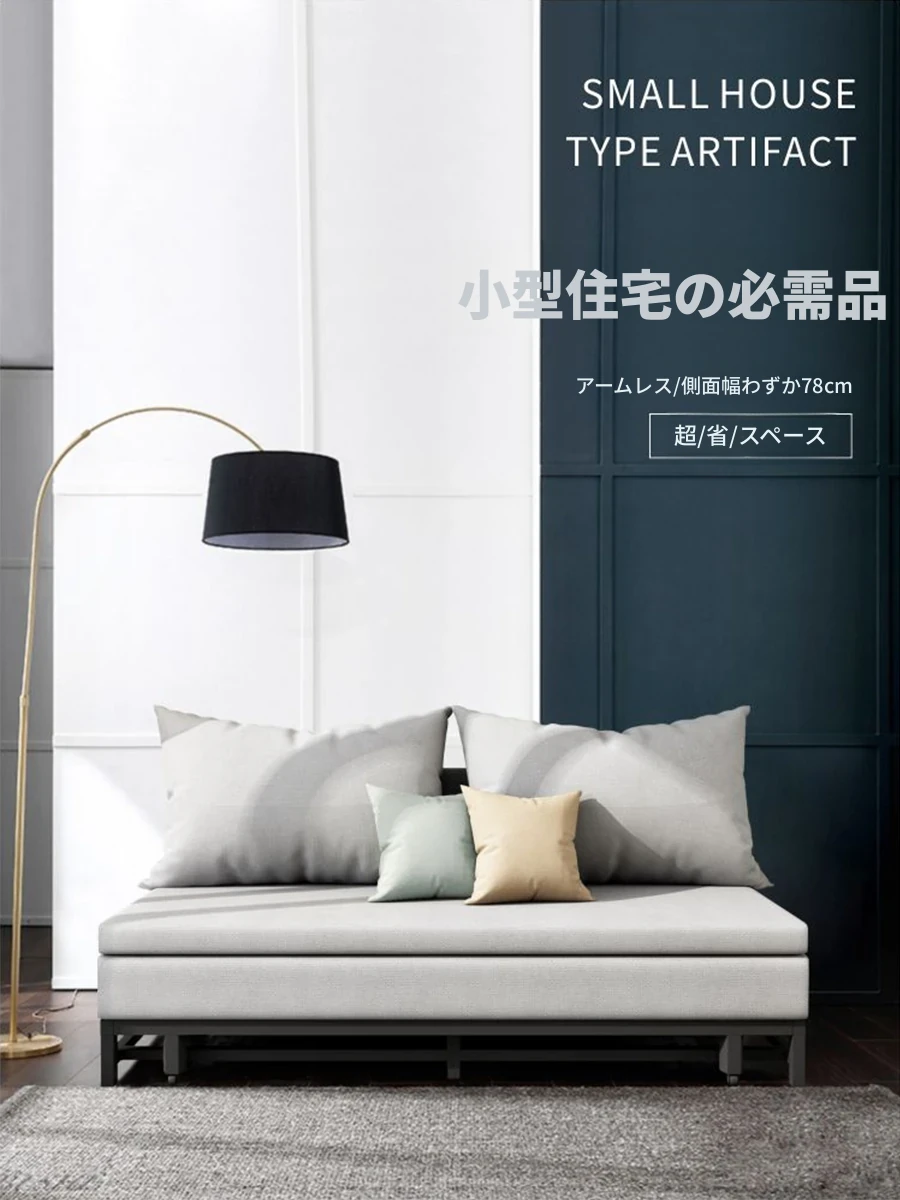 折りたたみ式ソファベッド - 2way多機能!小型住宅やリビングに最適なダブルサイズ。3人まで対応、アームレストなしでスッキリしたデザイン。快適な寝心地とスタイリッシュな見た目で、書斎にもぴったり!