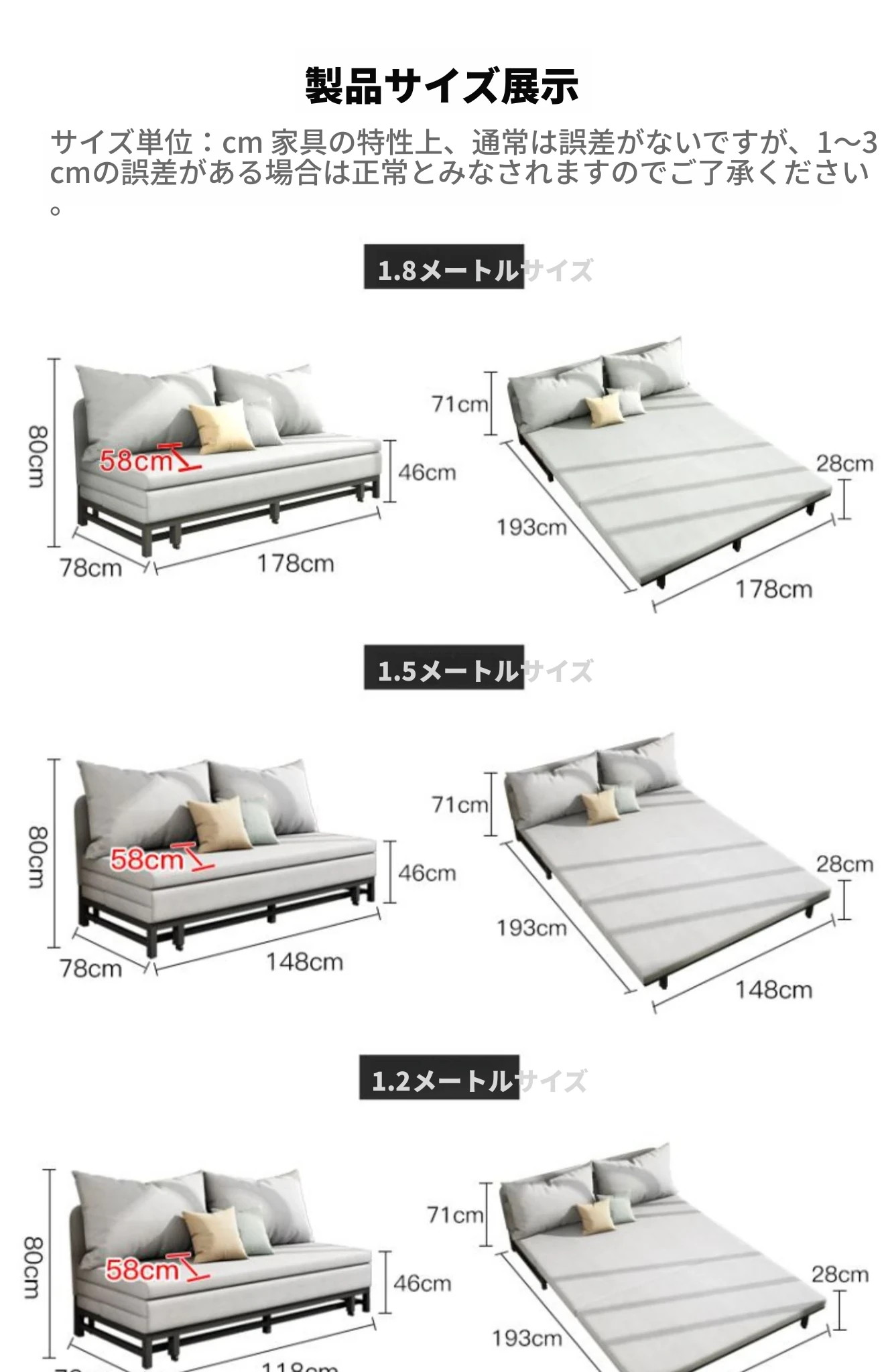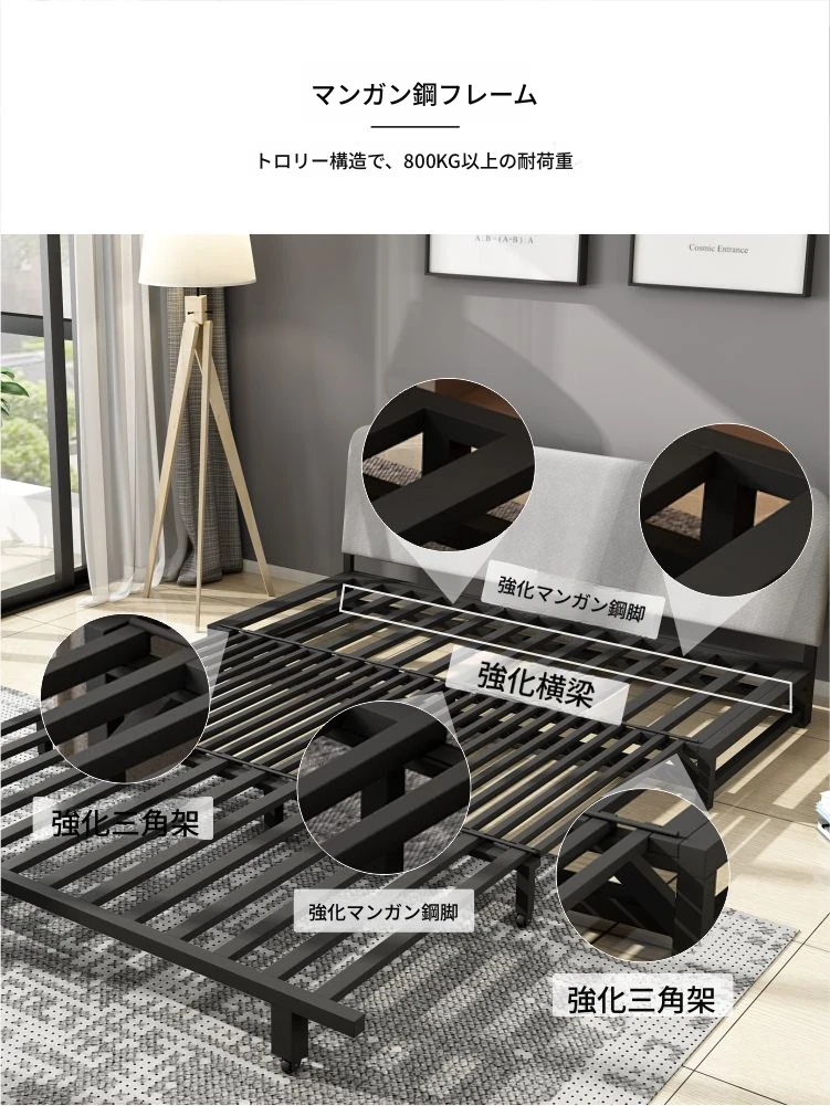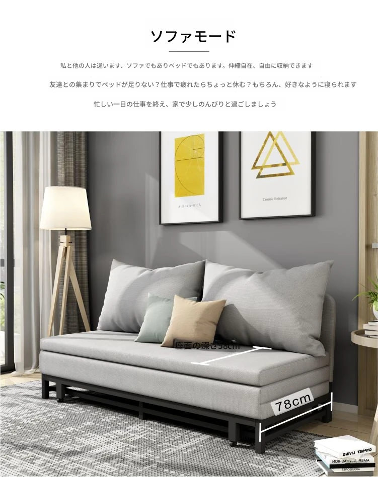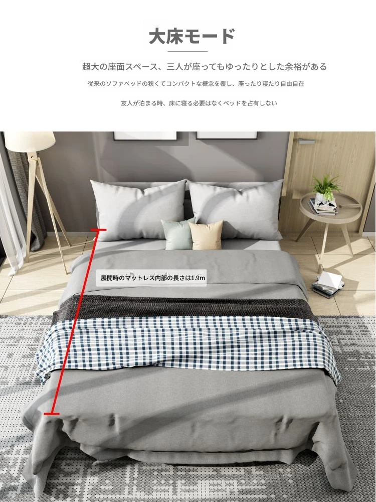 折りたたみ式ソファベッド - 2way多機能!小型住宅やリビングに最適なダブルサイズ。3人まで対応、アームレストなしでスッキリしたデザイン。快適な寝心地とスタイリッシュな見た目で、書斎にもぴったり!