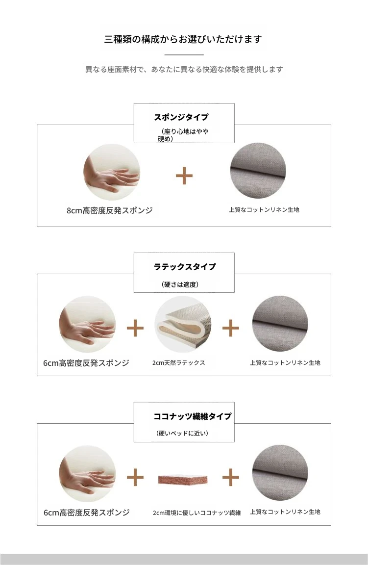148cm スポンジタイプ(収納なし) 座り心地はやや硬め