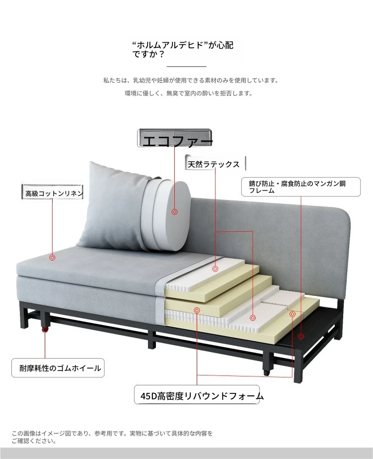 88cm ココナッツファイバタイプ(収納なし) 1つのクッション 硬板ベッドに近い硬さ