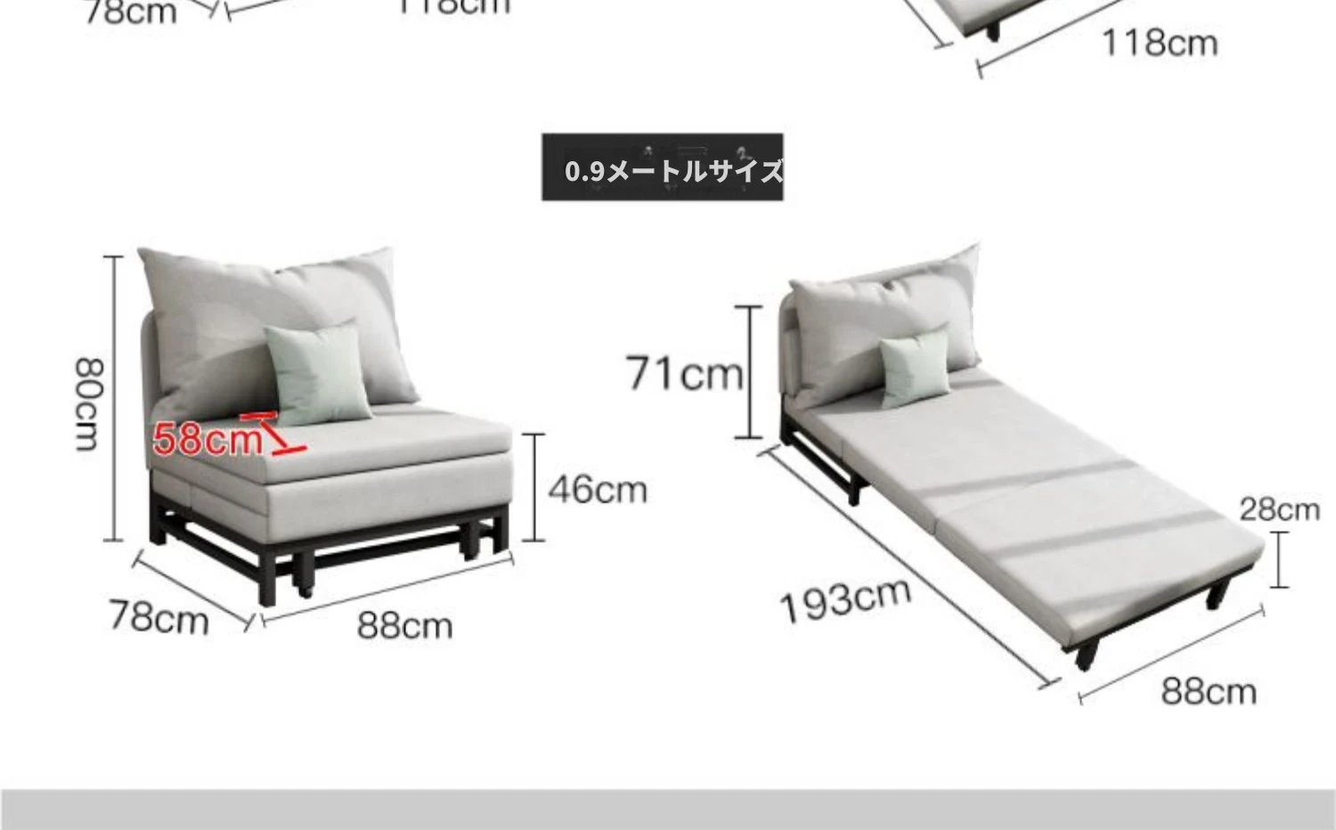 88cm スポンジタイプ(収納なし) 1つのクッション 座り心地はやや硬め