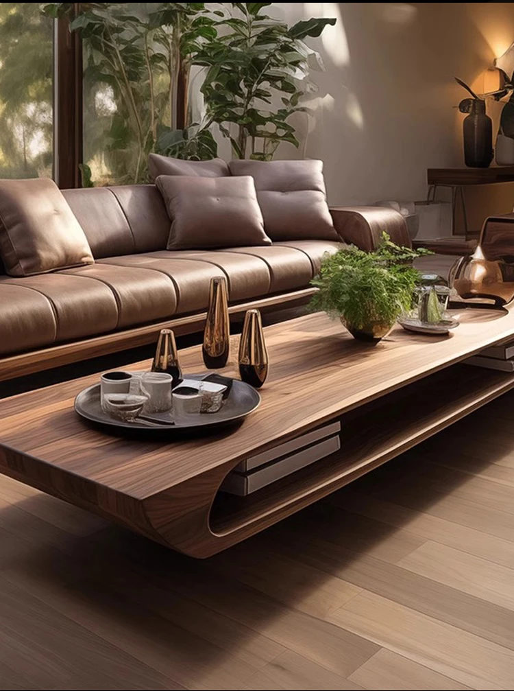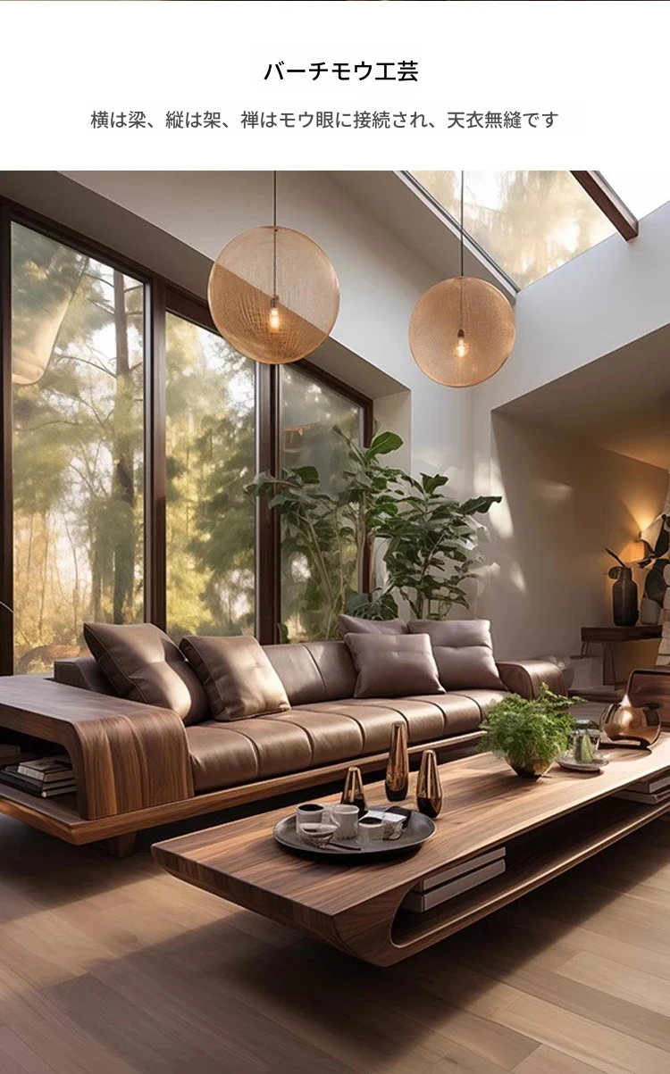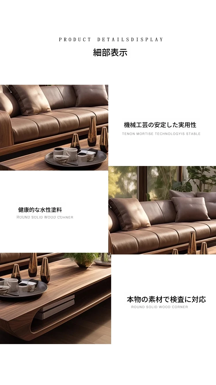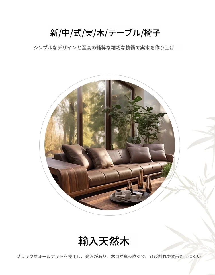 新中式スタイルの3人掛けソファ|北米産ブラックウォールナット使用|高級リアルレザー仕立て|ヴィラにぴったりな軽奢華デザインのリビングソファ新登場!