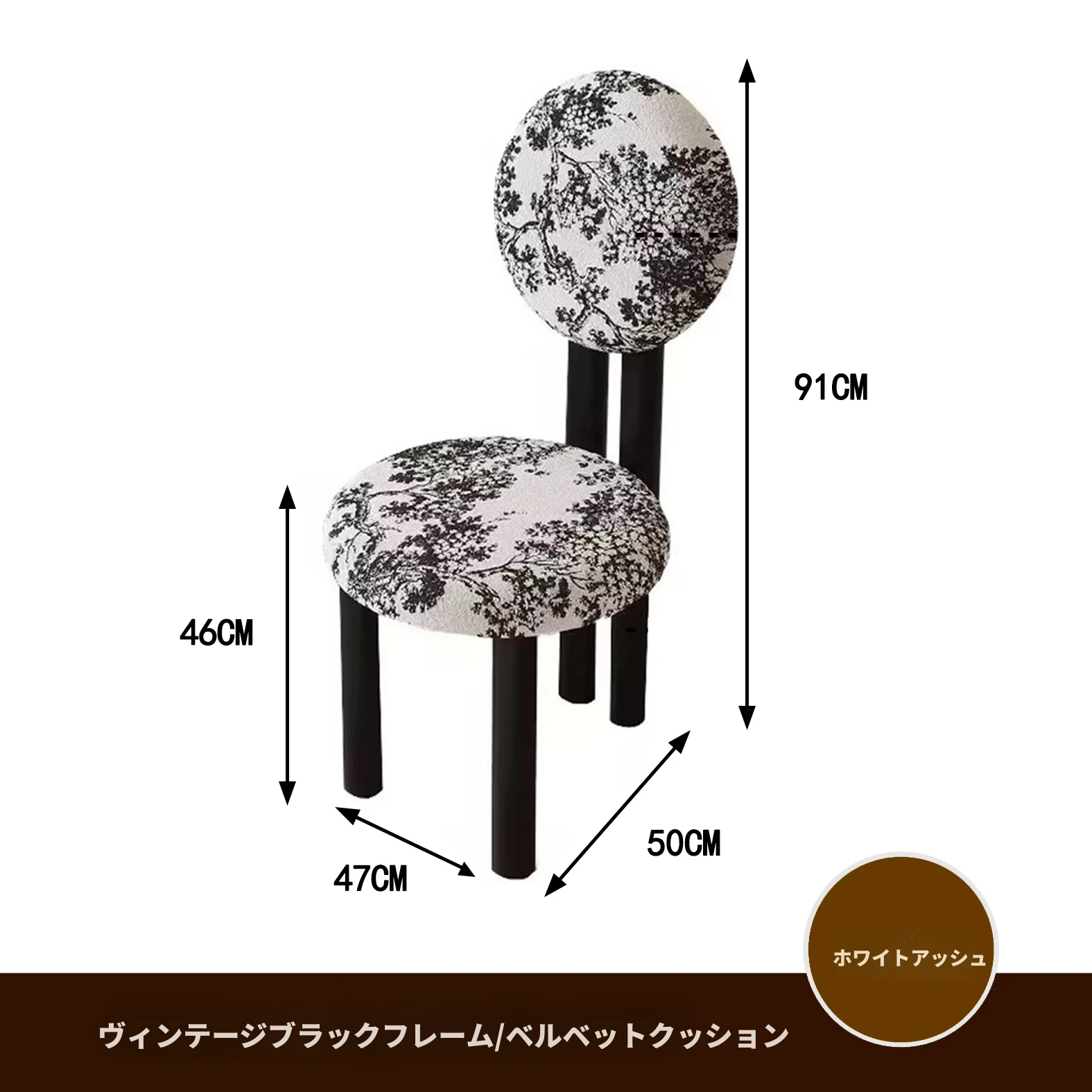 ホワイトアッシュ+丸型包み椅子-黒色【組み立て済み発送】