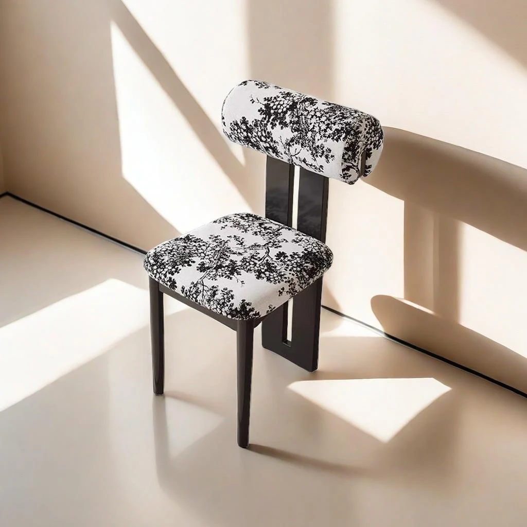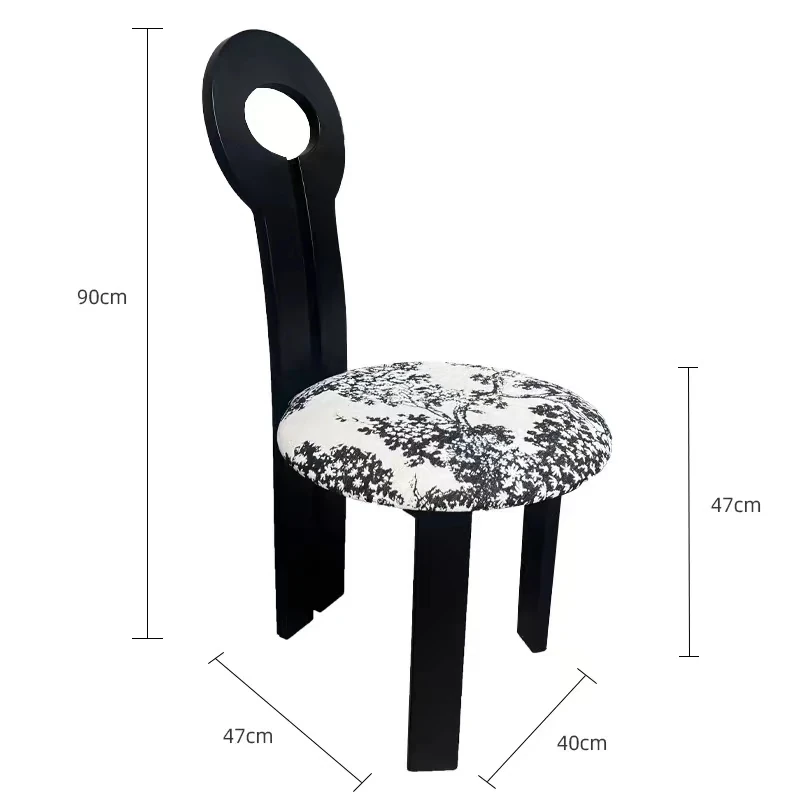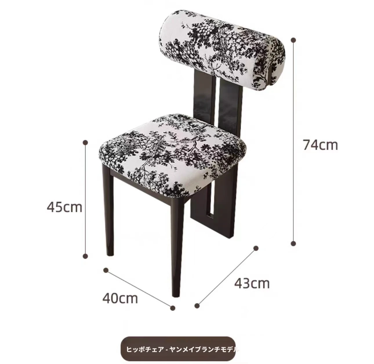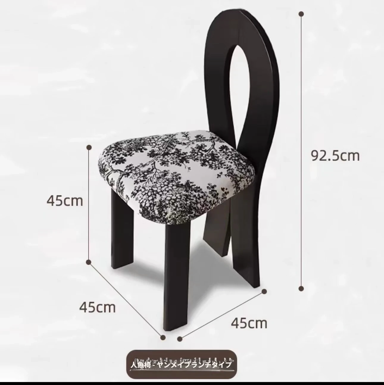 人魚デザインの北欧風実木ブラックヴィンテージスタイル書斎デスクとチェアセット - モダンなフレンチレトロ感を演出する、洗練された背もたれ付きダイニングチェア