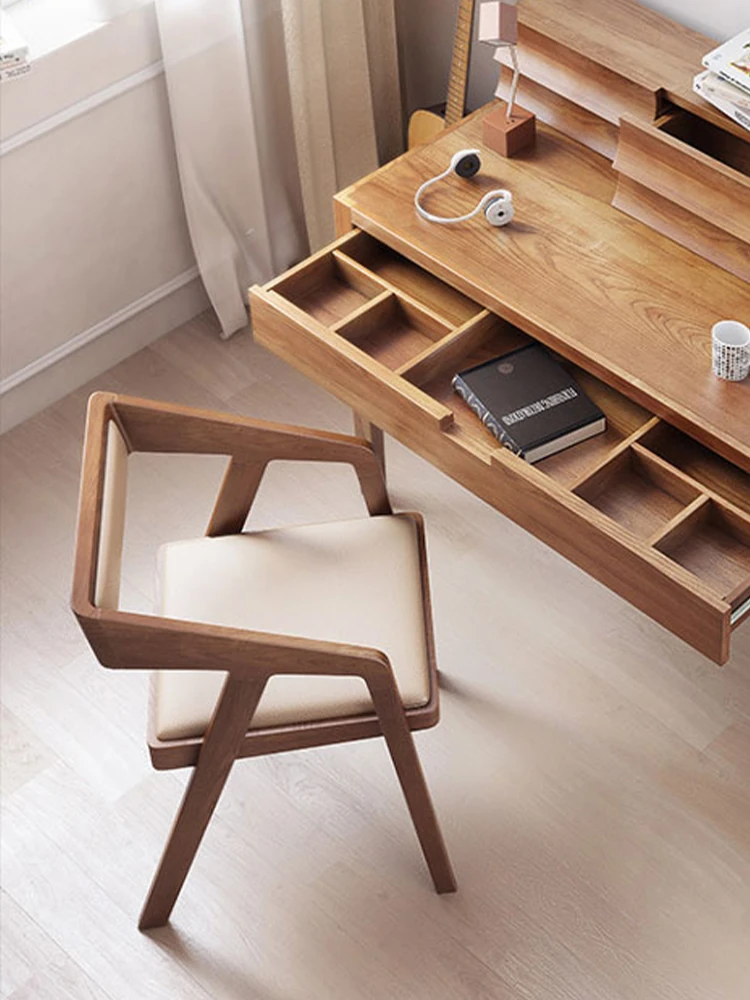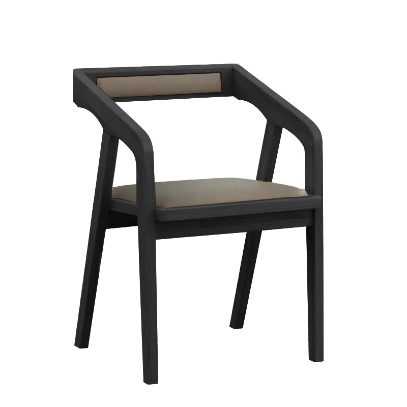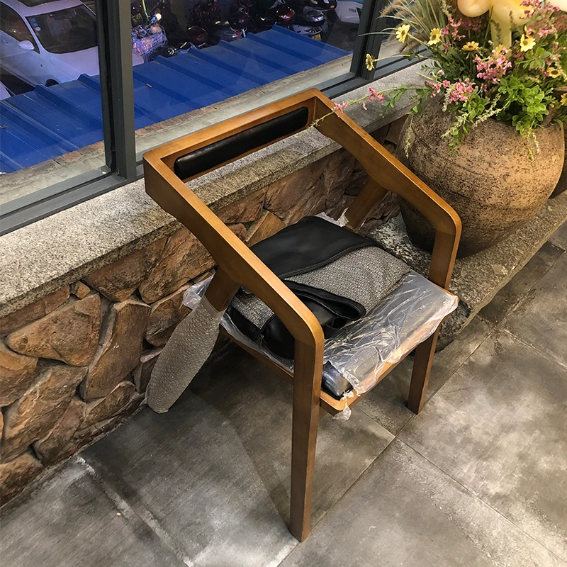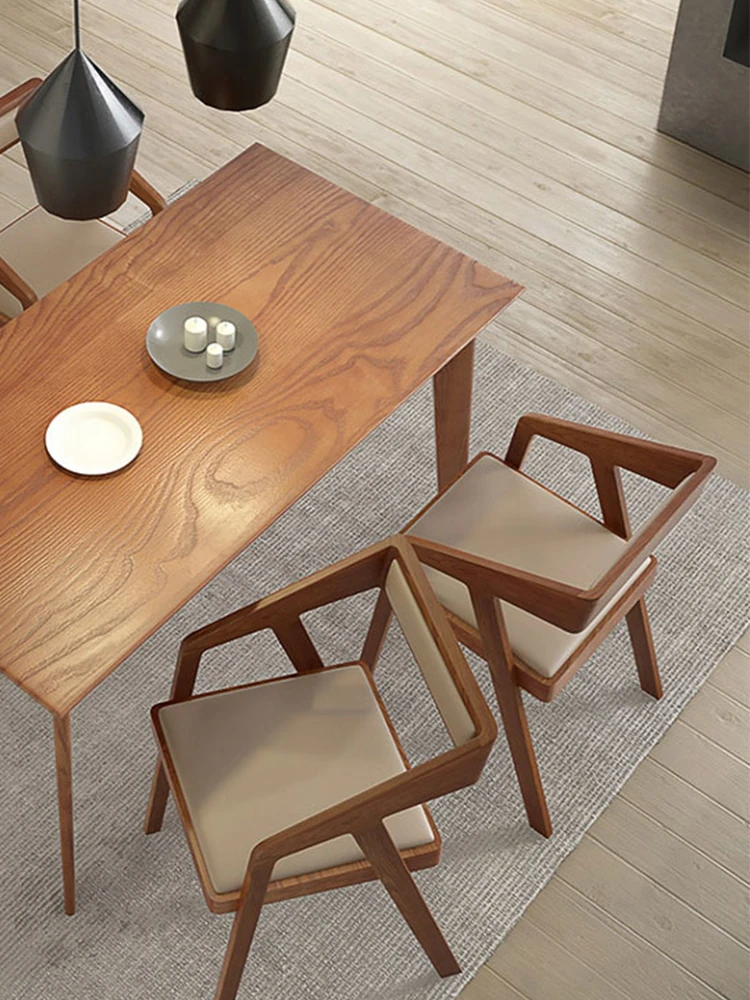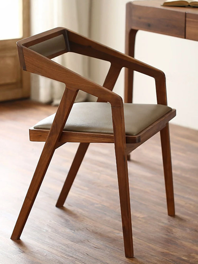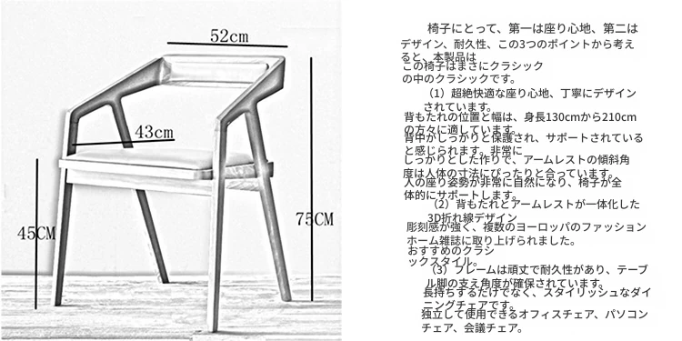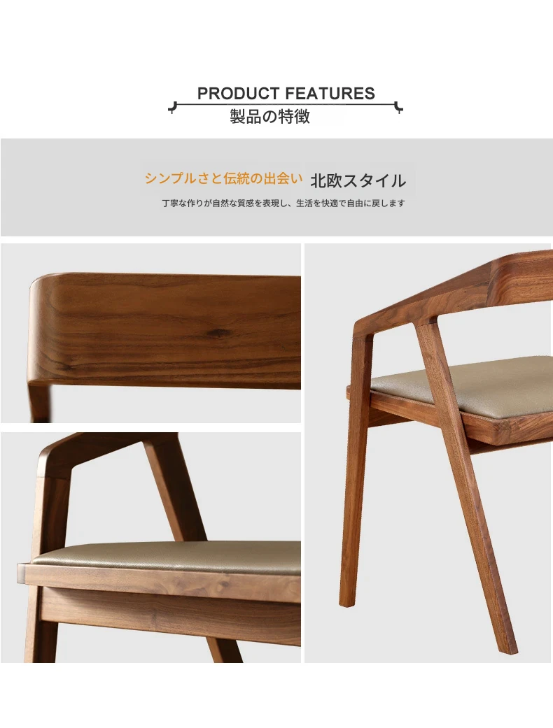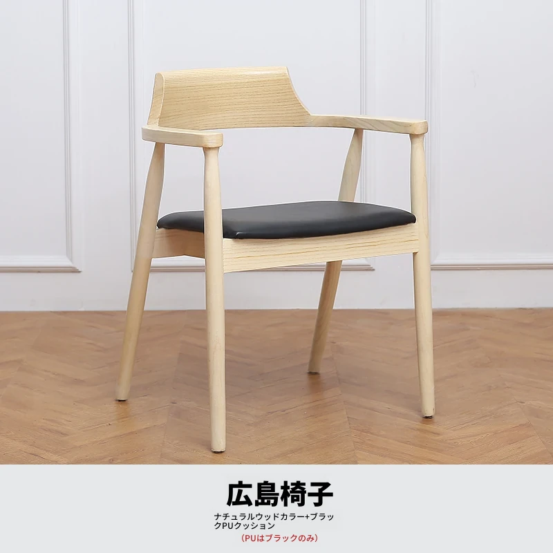 北欧スタイルの無垢材ダイニングチェア|デザイナー椅子|広島椅子|アームレスト付き|快適な背もたれ|中華風のビジネス会議にも最適な実用的な無垢材チェア!