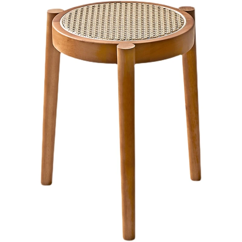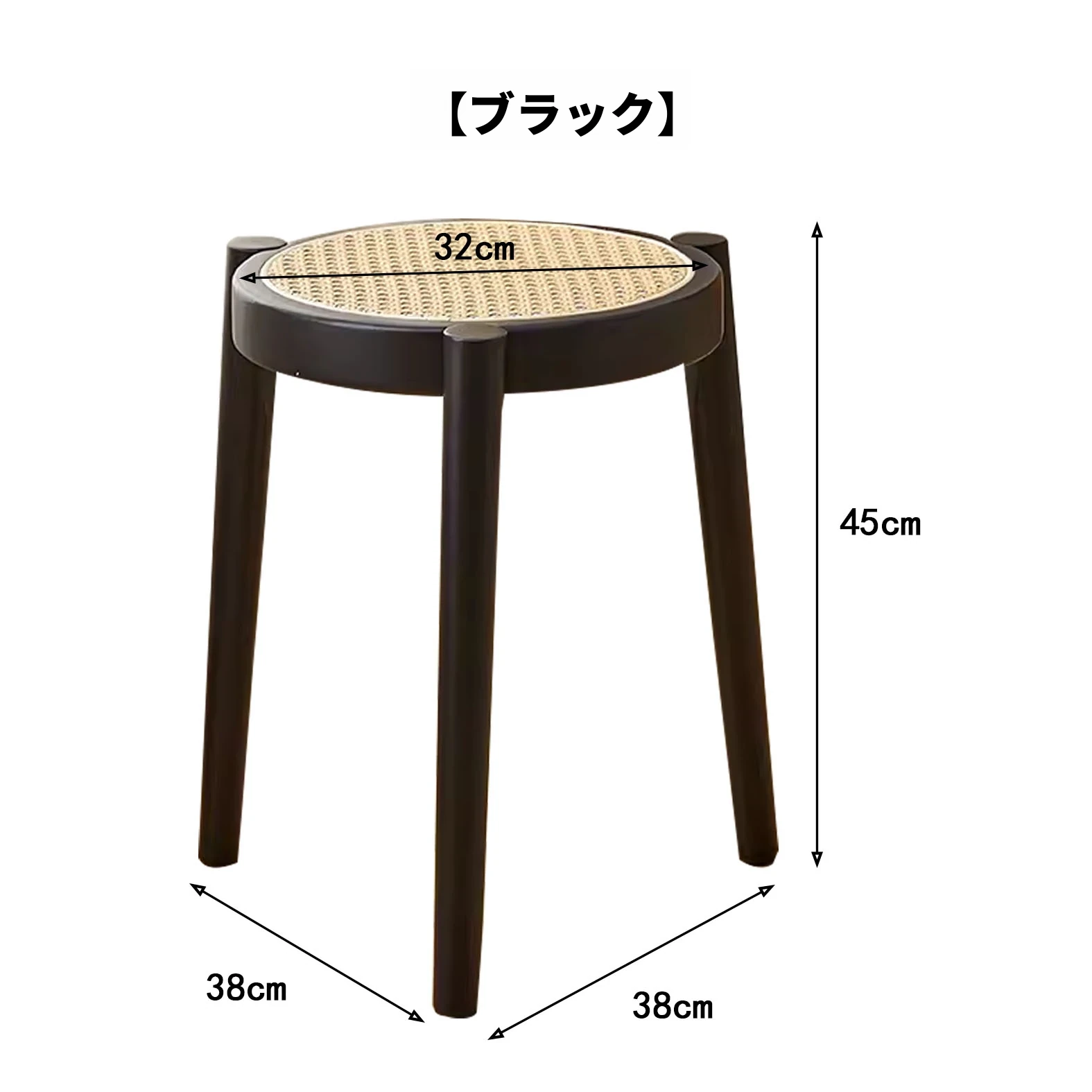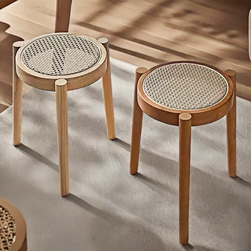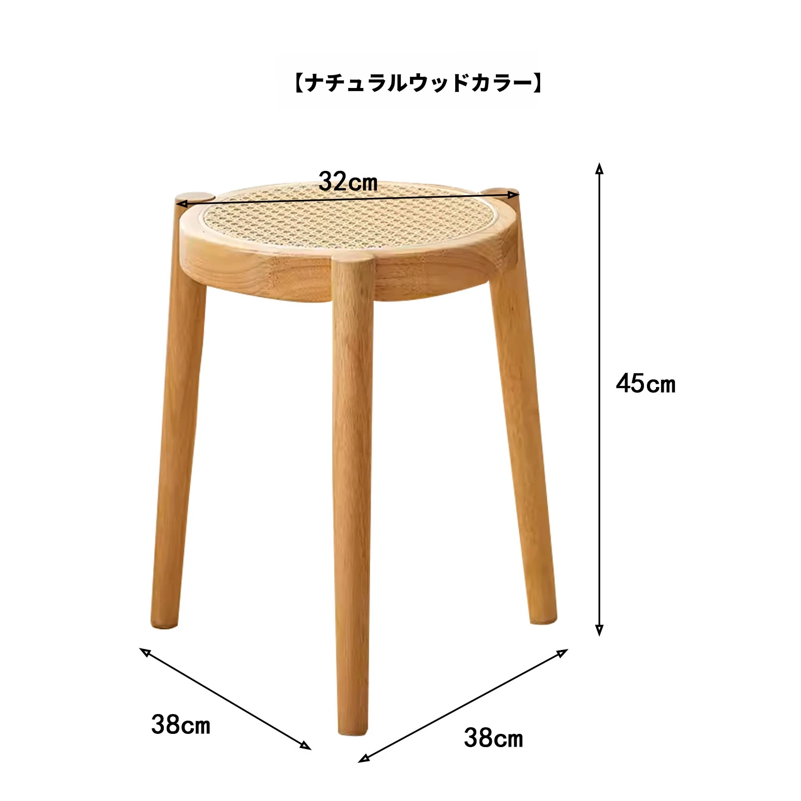 北欧風の天然木とラタン編みスツール|スタッカブルで便利!リビングやダイニングに最適なミニラウンドスツール|シンプルなデザインで化粧台やカジュアルな休憩にもぴったり!