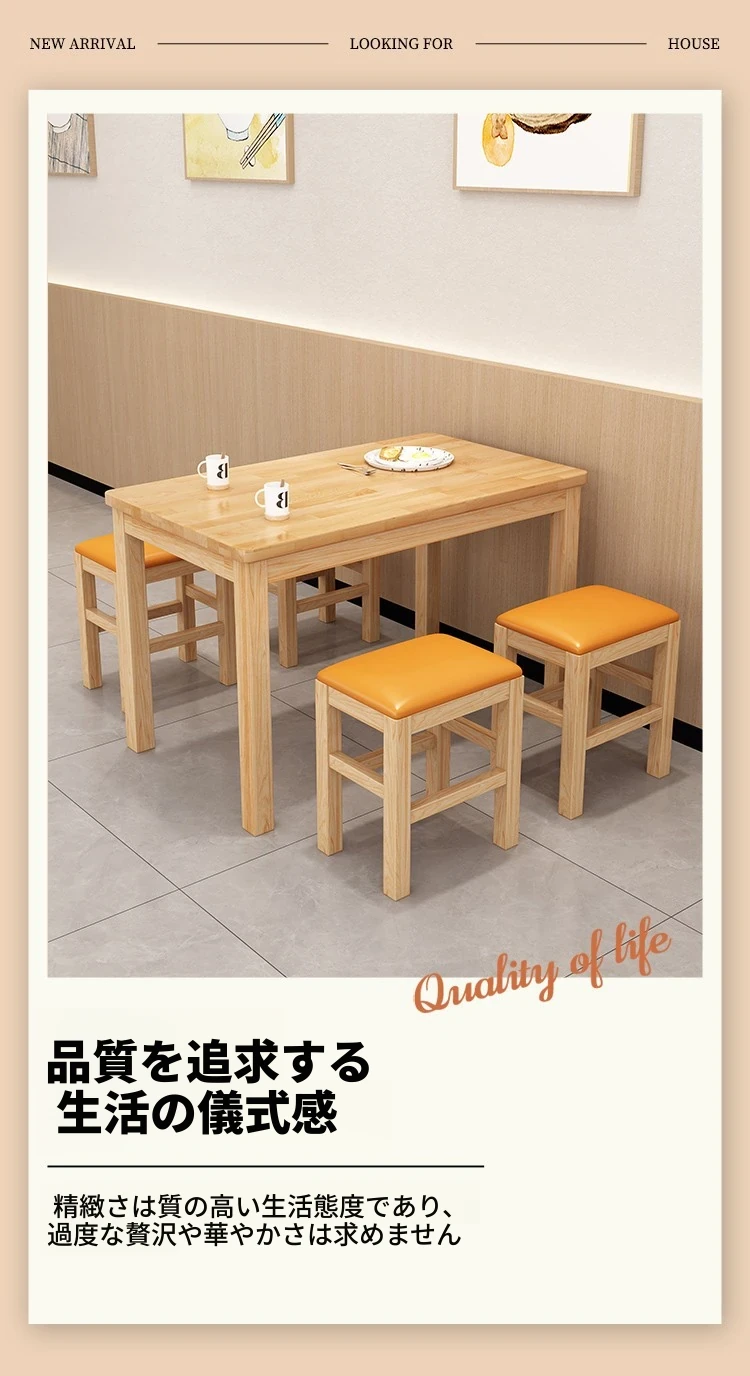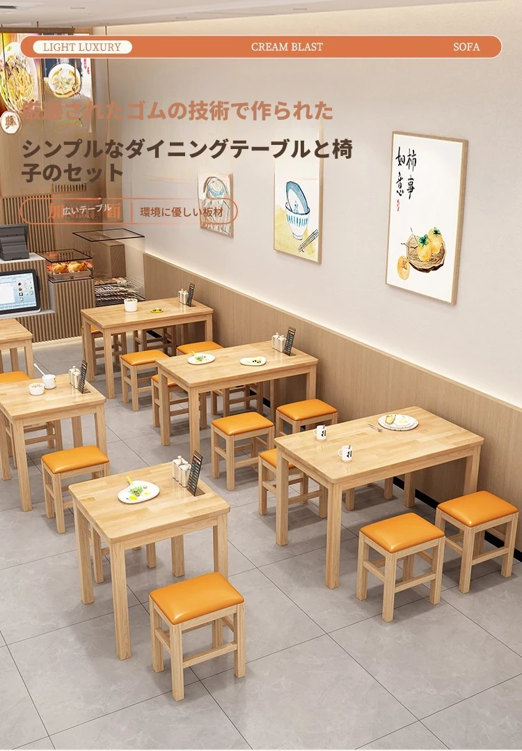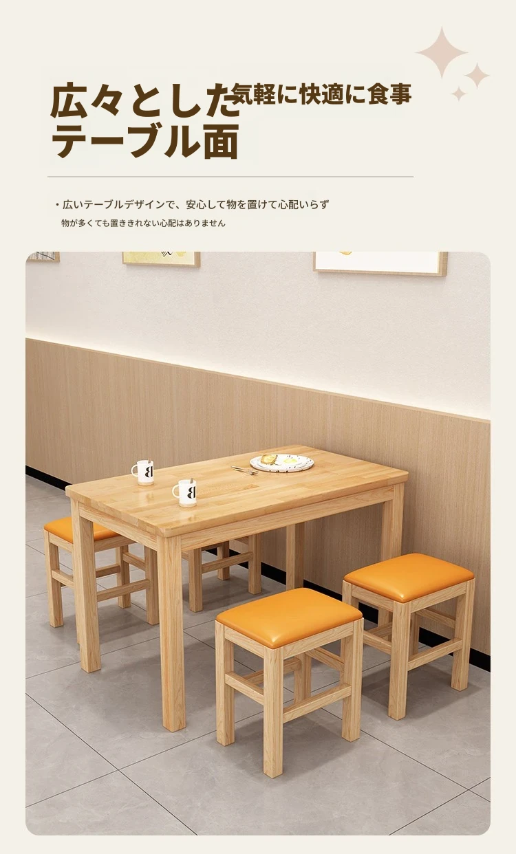 厳選された無垢材のカフェテーブルセット!飲食店や家庭向け、コンパクトなデザインで小さなお部屋にも最適な長方形テーブルとチェアの組み合わせ。モダンなスタイルで、おしゃれな食事空間を演出します!