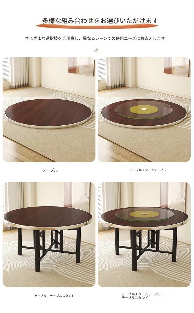 厚手大円テーブル、回転式デザインで家庭やレストラン、ホテル、食堂に最適!折りたたみ可能な円形テーブルで、スペースを有効活用。おしゃれで機能的なダイニング体験をお届けします!
