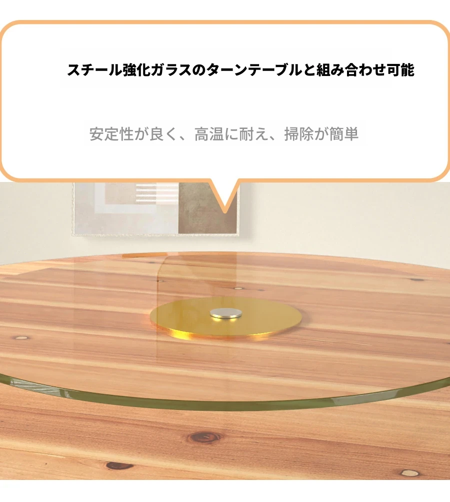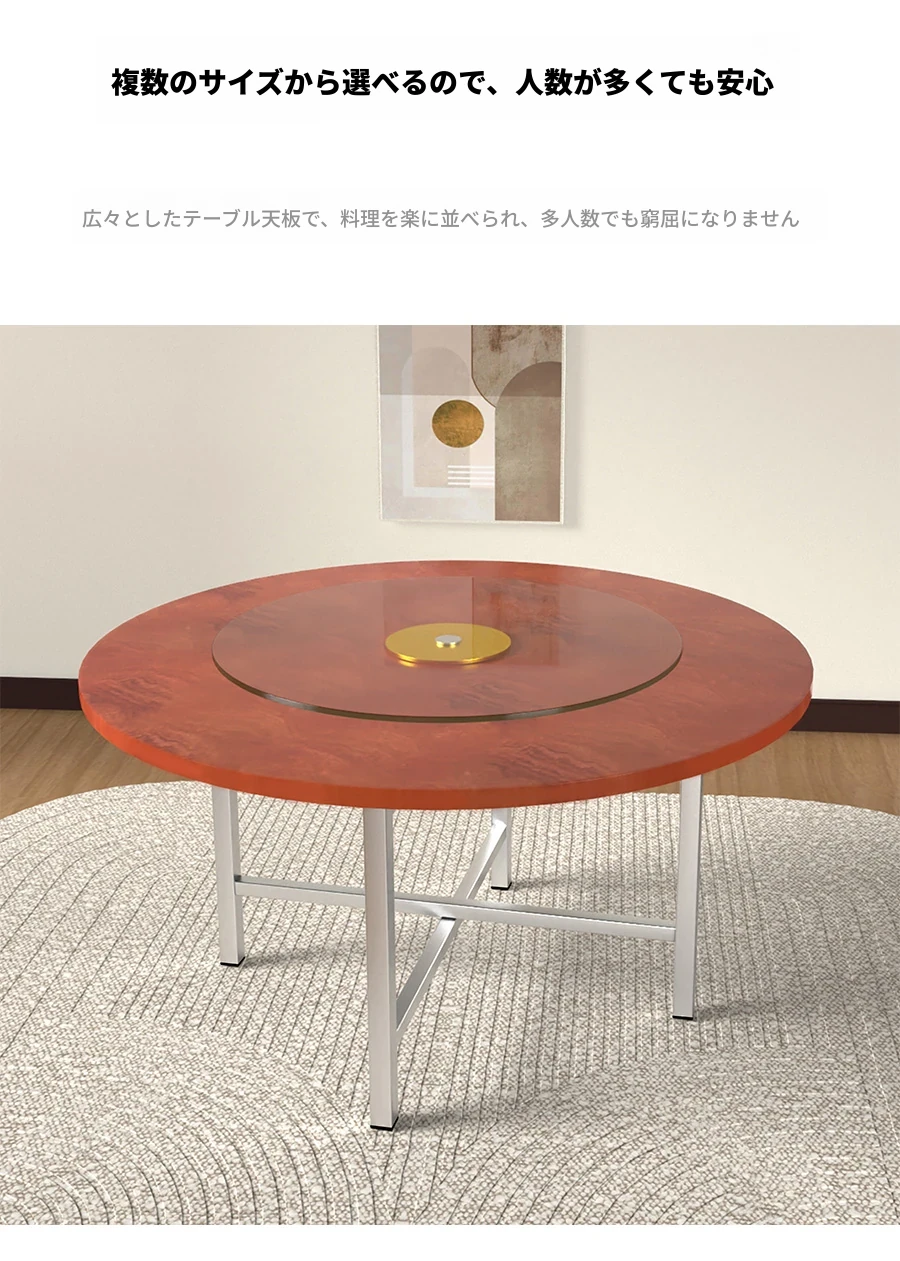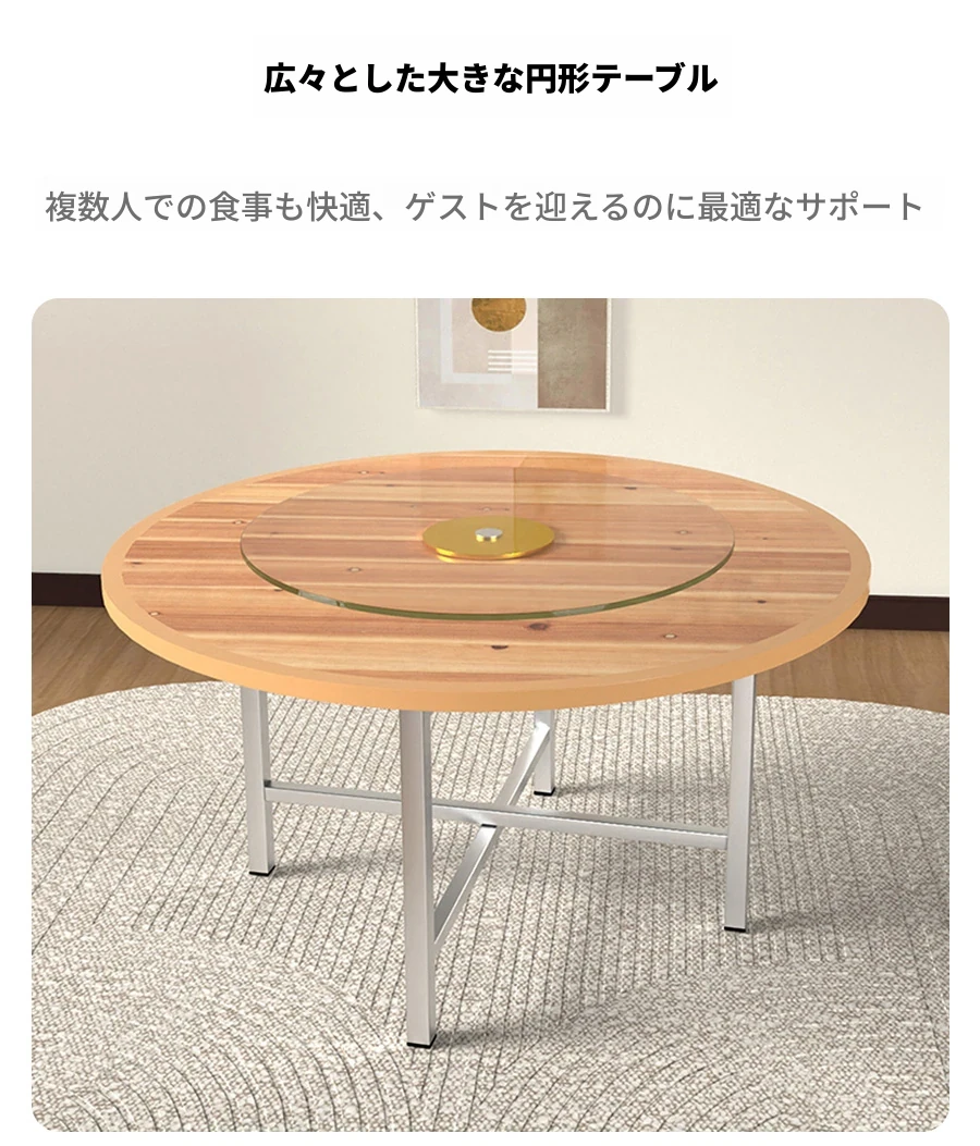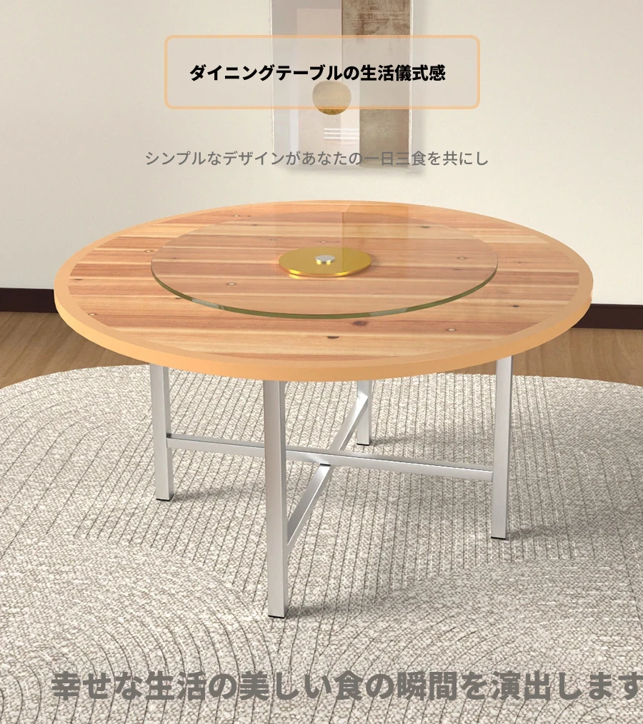 厚手のラウンドテーブル|無垢材使用・回転式・家庭やレストランに最適な大きな円形テーブル|10人用の広々としたデザイン!食事の時間をより楽しく、美しく演出します。