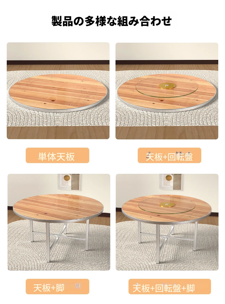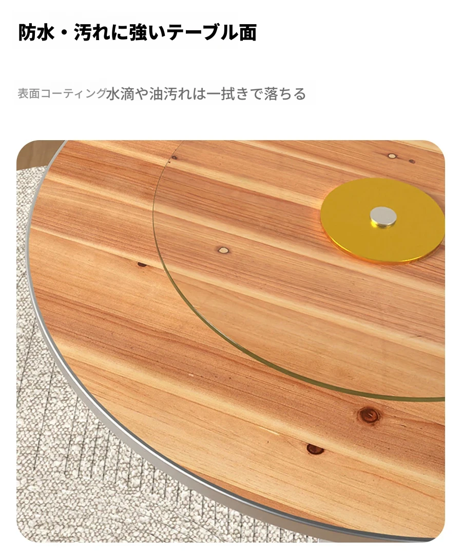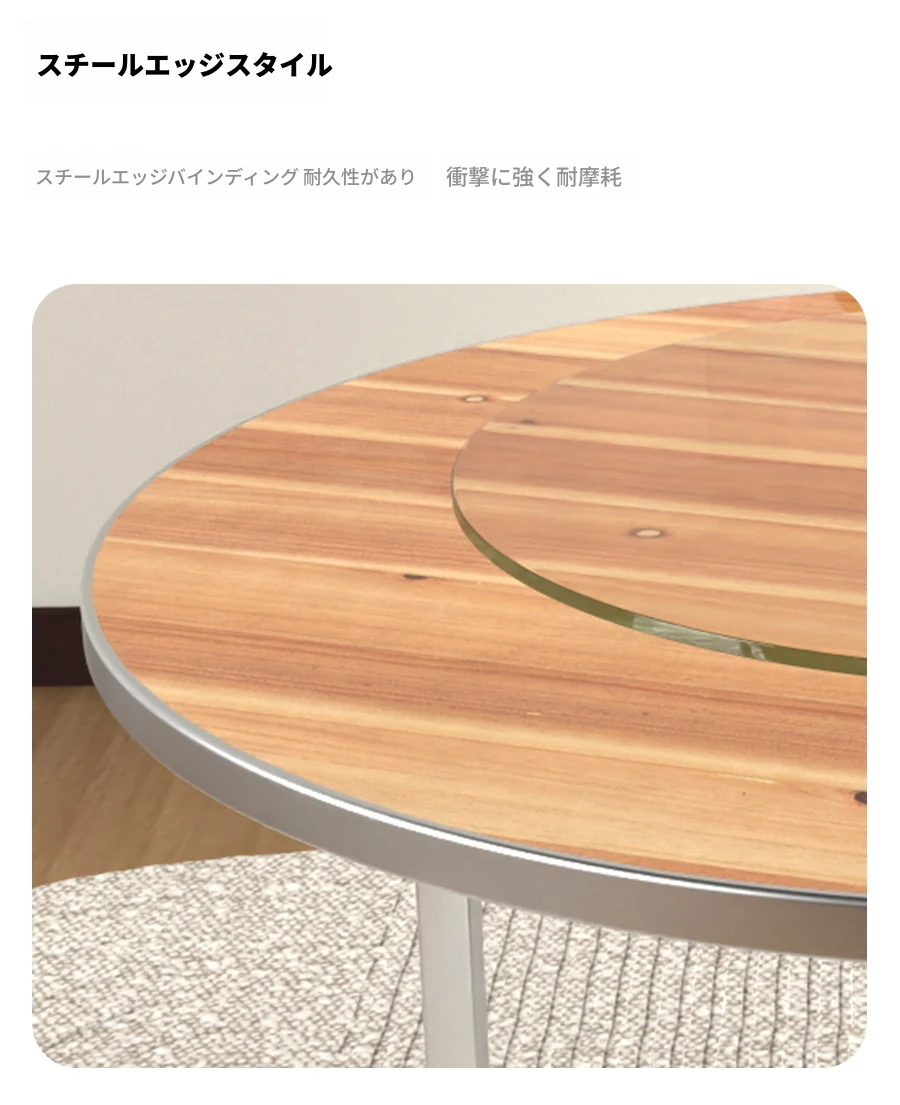 厚手のラウンドテーブル|無垢材使用・回転式・家庭やレストランに最適な大きな円形テーブル|10人用の広々としたデザイン!食事の時間をより楽しく、美しく演出します。