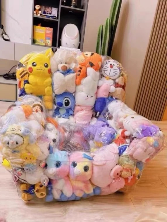 透明ソファドール収納マシュマロマジック!リラックスできるエアチェア、寝転びながら楽しむDIYぬいぐるみの充填も可能。人気のデザインでお部屋を彩る!