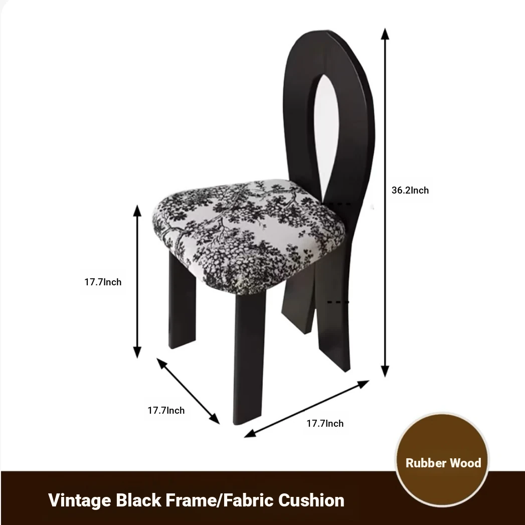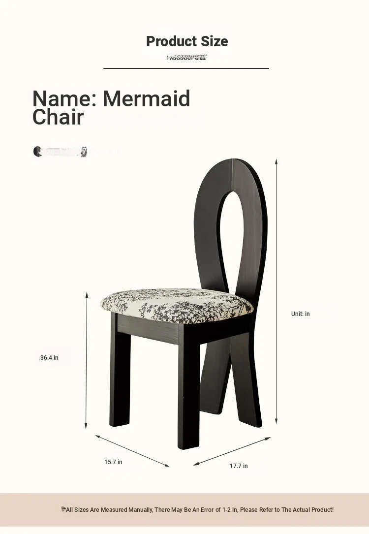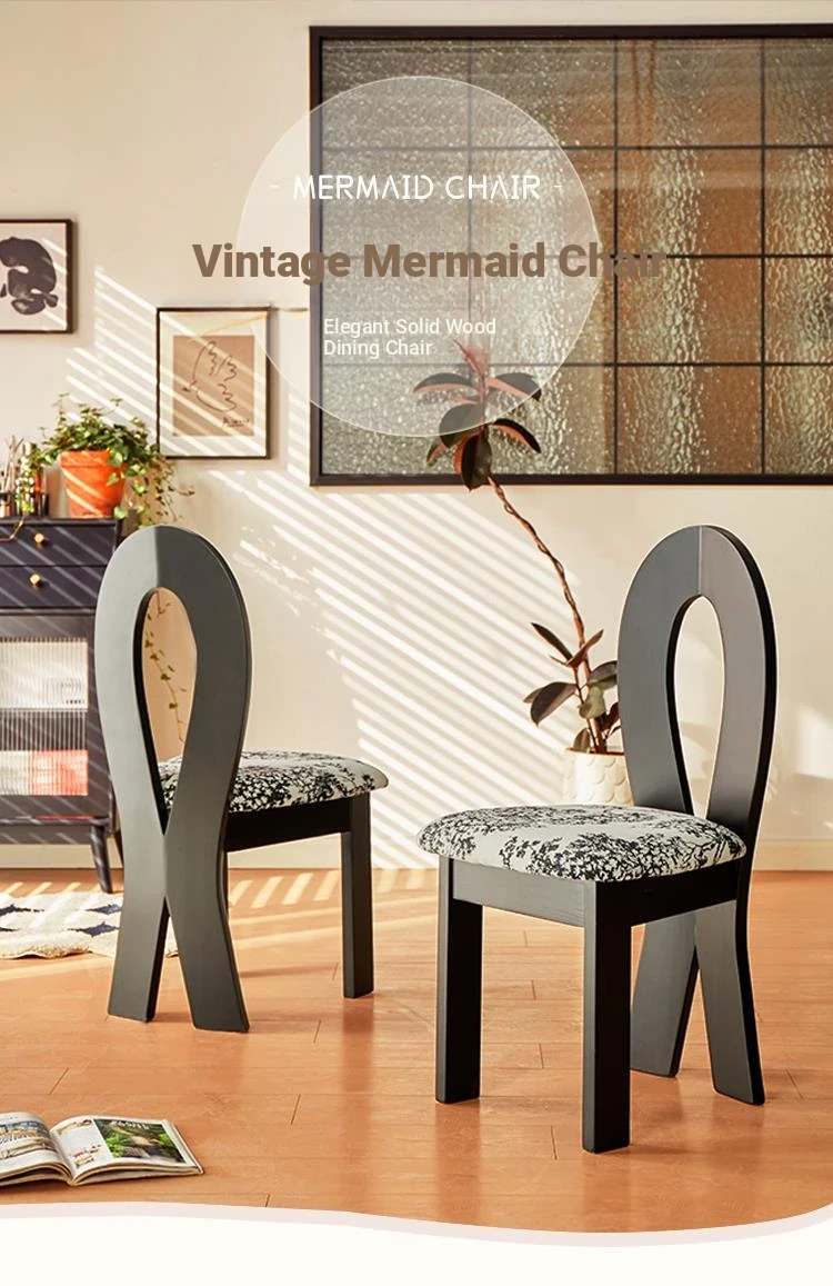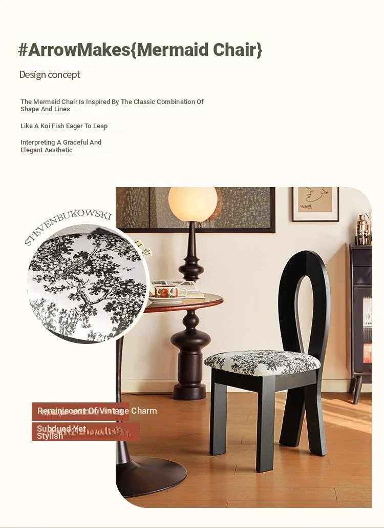 Vintage Makeup Chair for Home Use - Retro Solid Wood Dressing Stool, Designer Mermaid Chair with French Backrest, Perfect for Bedrooms and Dining Spaces.