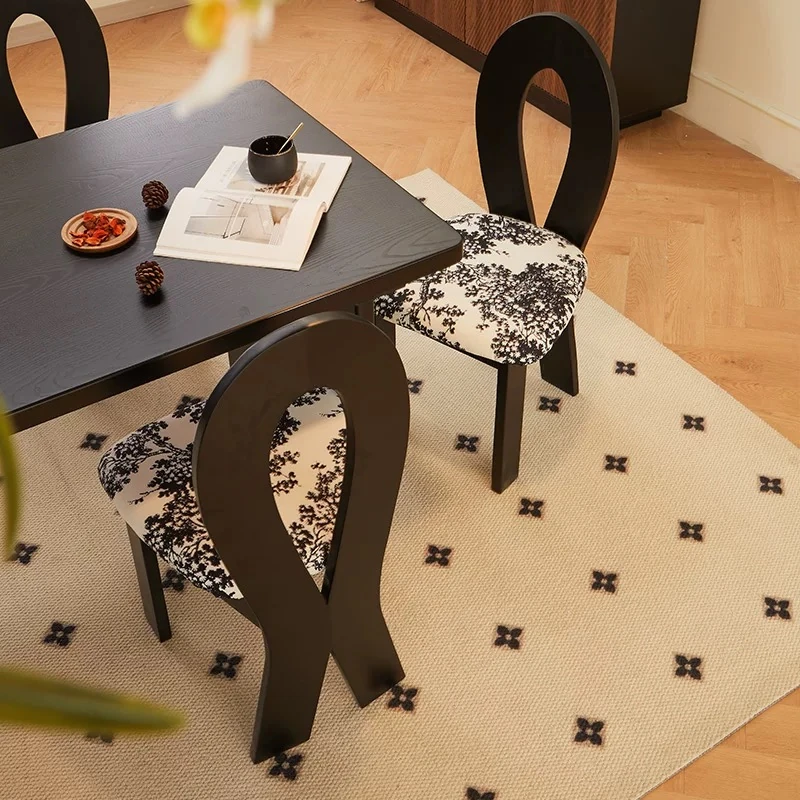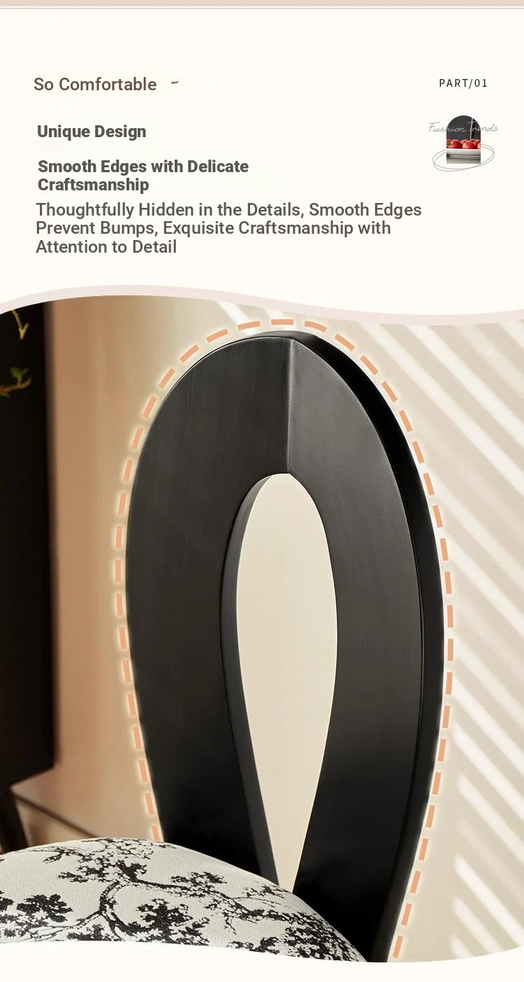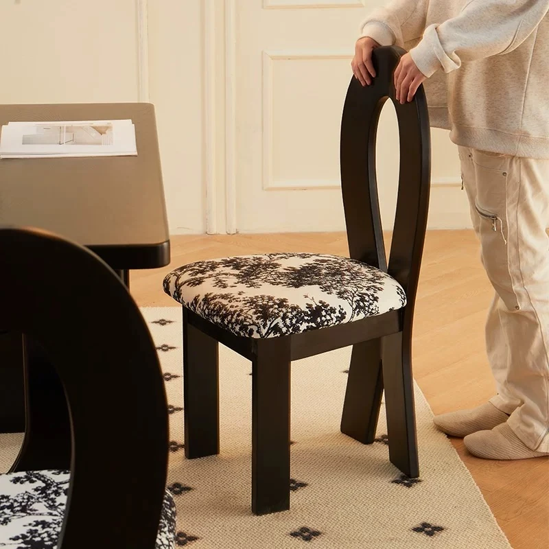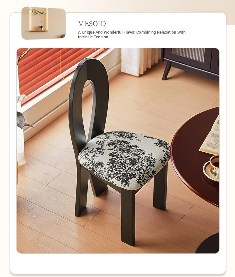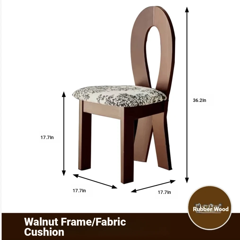 Vintage Makeup Chair for Home Use - Retro Solid Wood Dressing Stool, Designer Mermaid Chair with French Backrest, Perfect for Bedrooms and Dining Spaces.