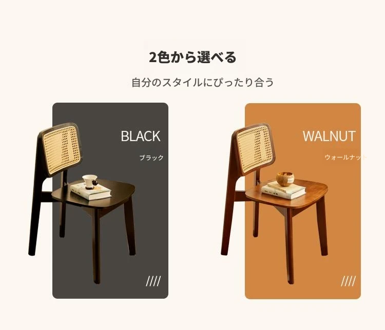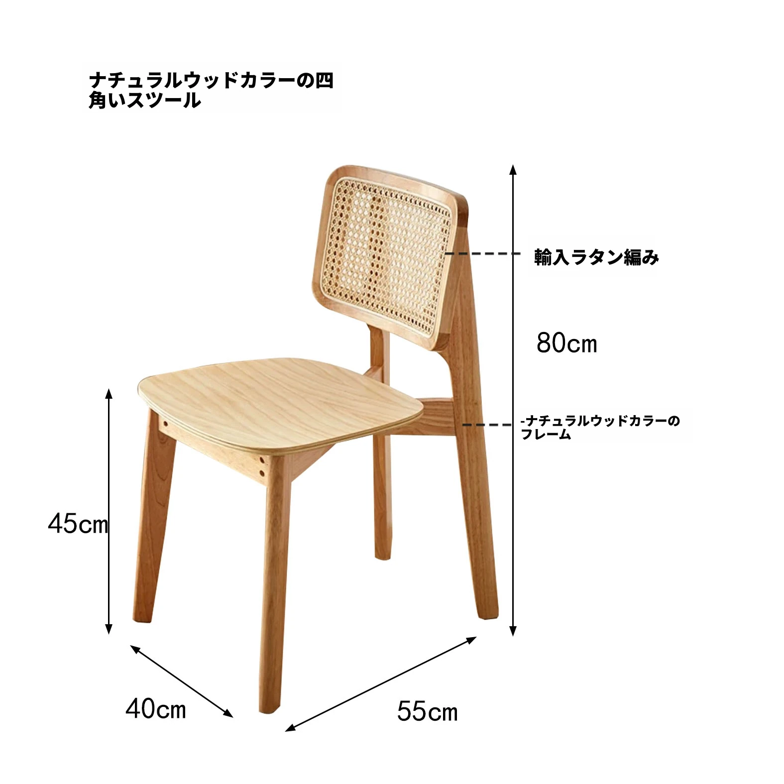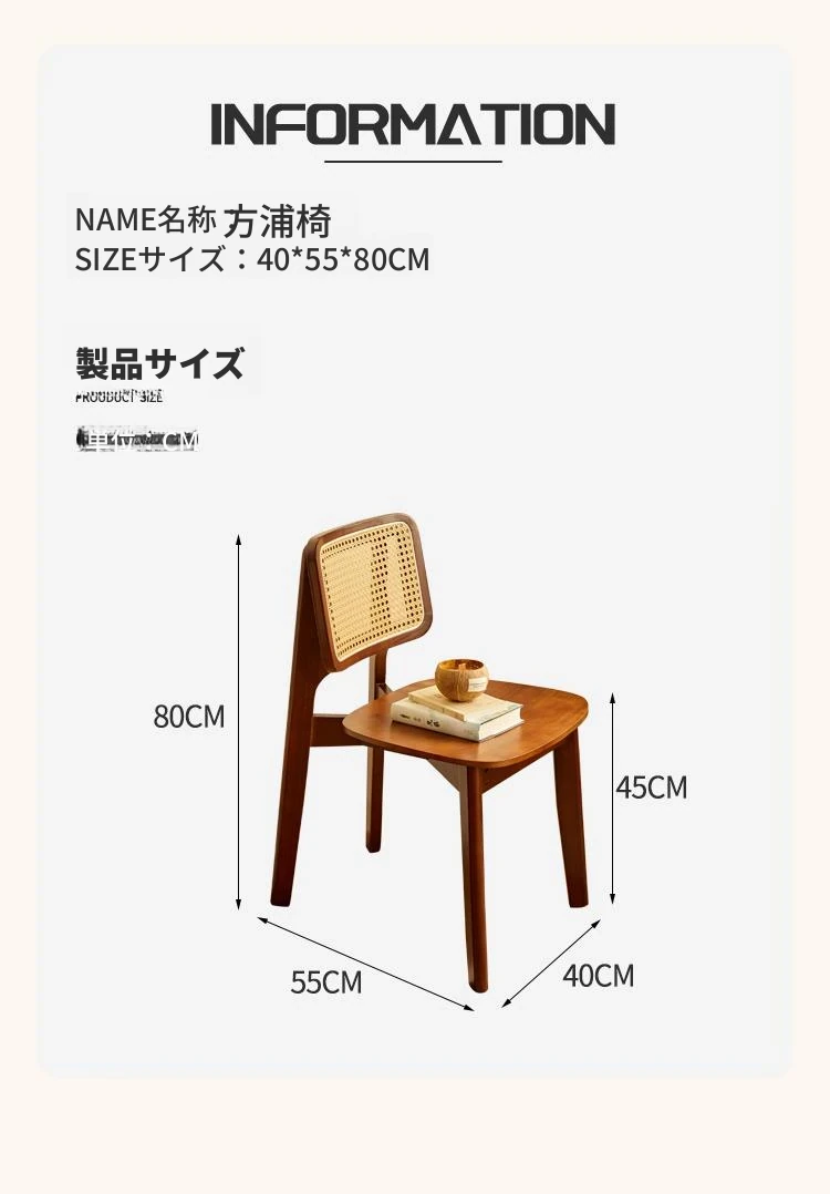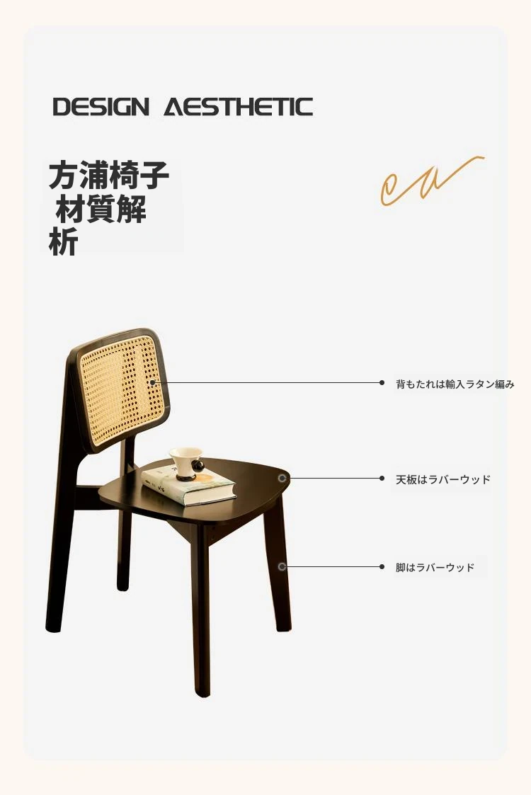 レトロな中古ラタン編みダイニングチェア、家庭用デスク・背もたれ付き化粧椅子。北欧の侘寂スタイルで、ブラックの無垢材を使用したダイニングテーブルとチェアのセット。おしゃれで機能的な空間作りに最適!