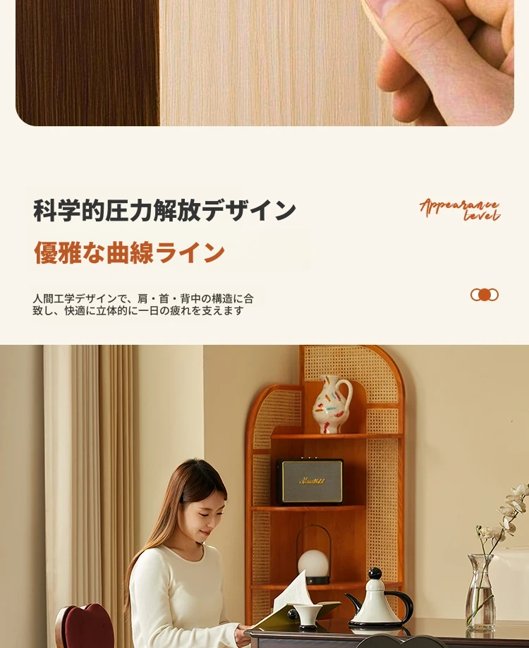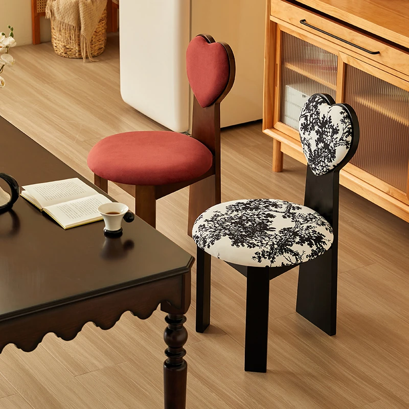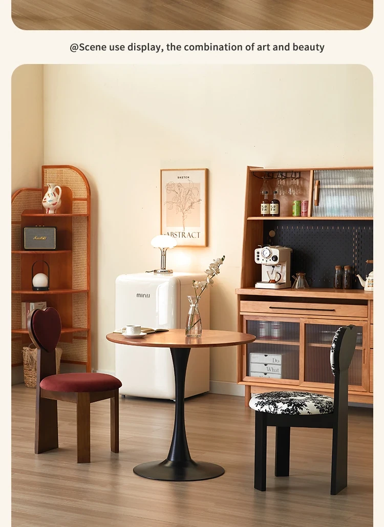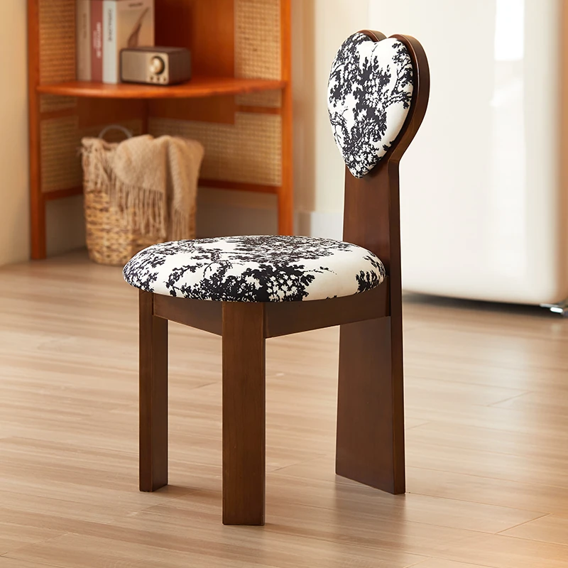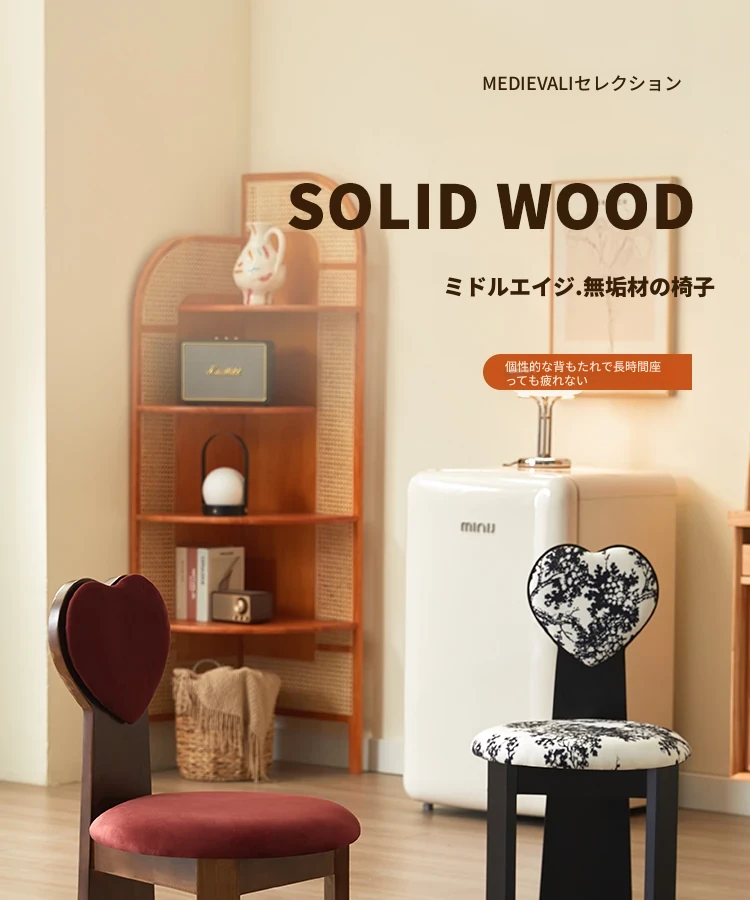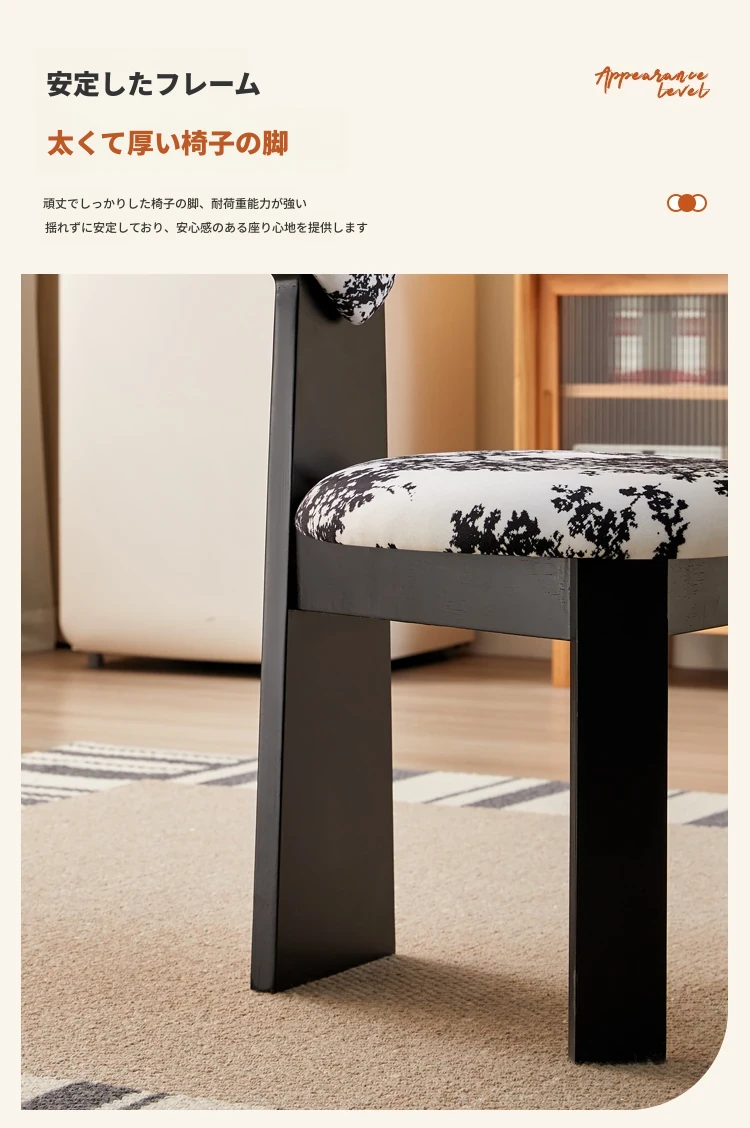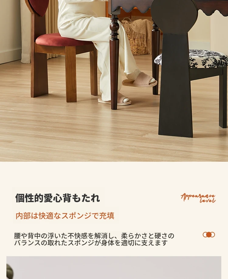 レトロな無垢材のフランス風ダイニングチェア|北欧風ミッドセンチュリーのデザイナー背もたれ|おしゃれな化粧椅子としても最適|リラックスして食事を楽しむための完璧な一脚!