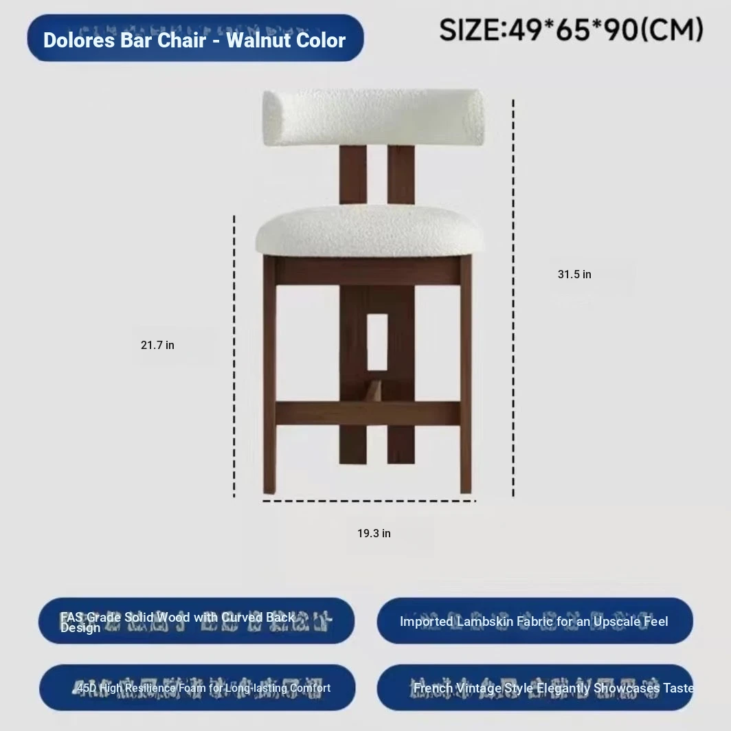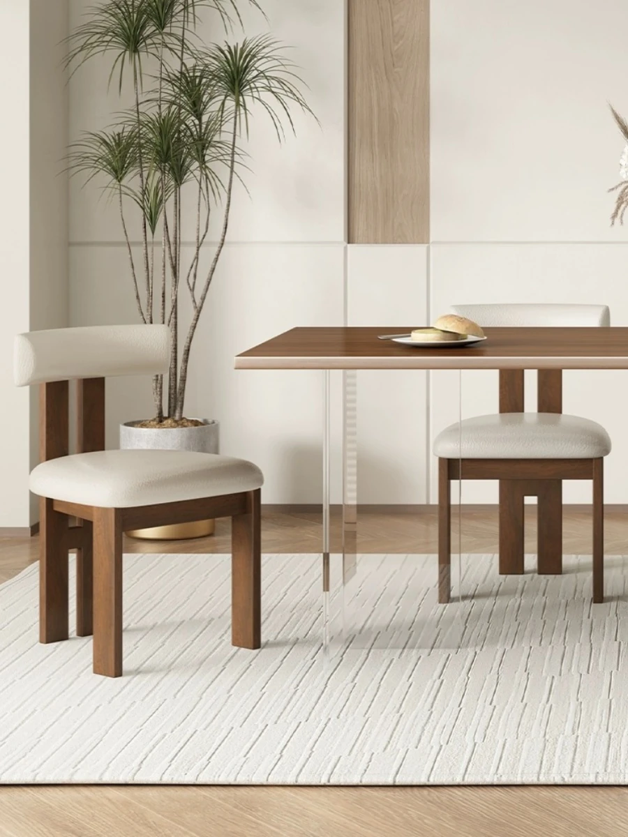 Vintage Solid Wood Dining Chair - French Wabi-Sabi Inspired Home Office Desk Chair with Backrest, Nordic Mid-Century Designer 55cm Chair for Hotels and Cozy Spaces