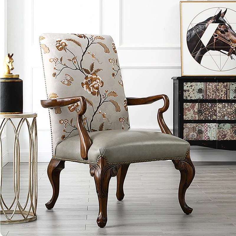 アメリカンスタイルの高級ウッド&ファブリックソフトパックダイニングチェア - エレガントな合成皮革使用、リビングやカフェ、ホテルに最適なくつろぎの一脚!おしゃれなドレッサー椅子としても大活躍!