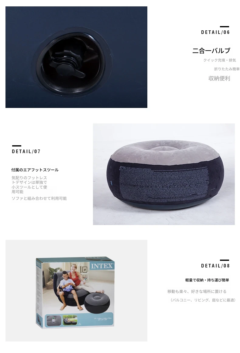 INTEXインフレータブルソファベッド - ゆったりとくつろげるレイジーソファベッド、折りたたみ式で使い勝手抜群!一人用エアソファベッドで、どこでも快適なリラックスタイムをお楽しみください。