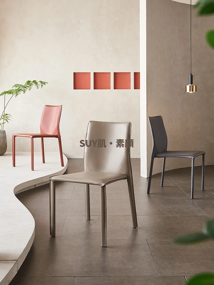 イタリアンミニマリズムの本革ダイニングチェア|家庭用デザイナー創造的リラックスチェア|高級ホテル向け実木会議・商談用椅子|洗練されたスタイルで、快適なひとときを提供します!