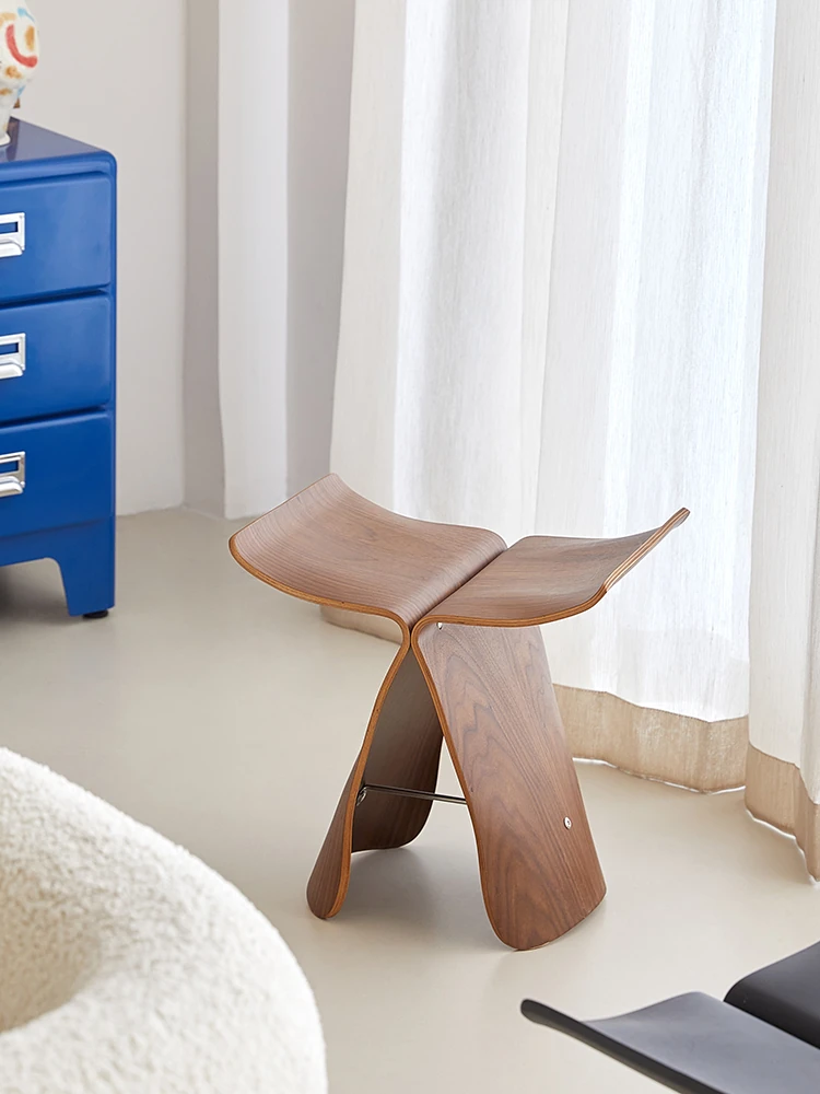 デンマークのクリエイティブデザイナーによるバタフライスツール!シンプルでスタイリッシュな北欧デザインの靴替え椅子、あなたのインテリアにぴったりのアイテムです。おしゃれな空間を演出しませんか?